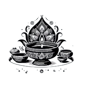 and pooja utensils that radiate purity, devotion,