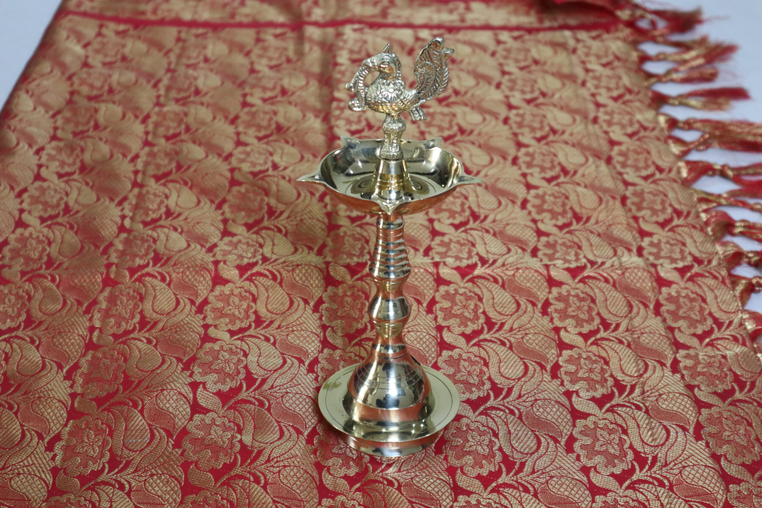 • Symbolic Design: The peacock motif represents beauty and prosperity, while the lighted diya represents knowledge and the triumph of light over darkness.
